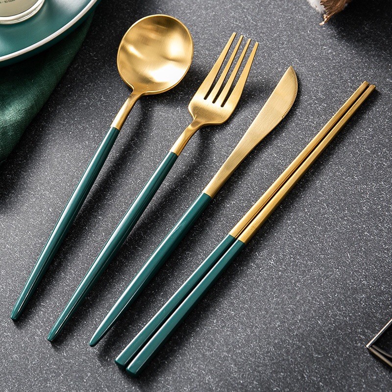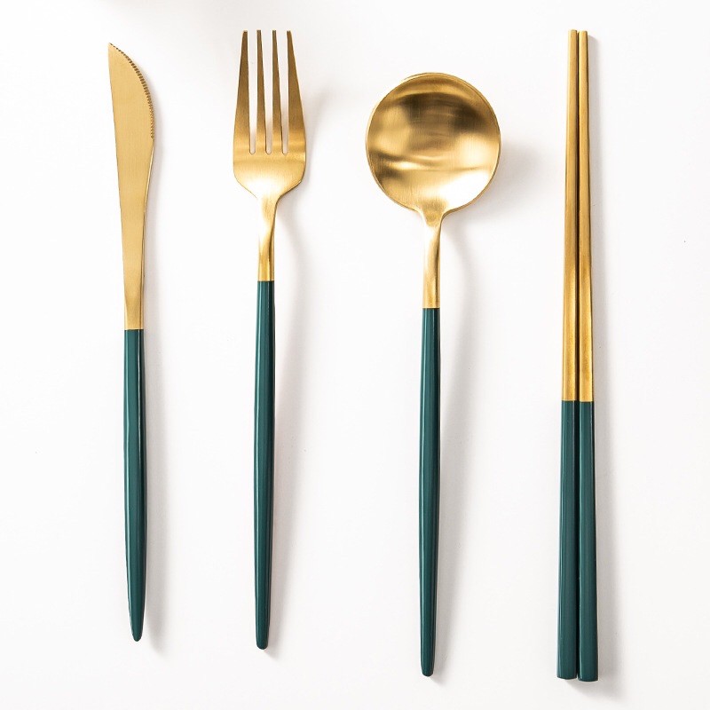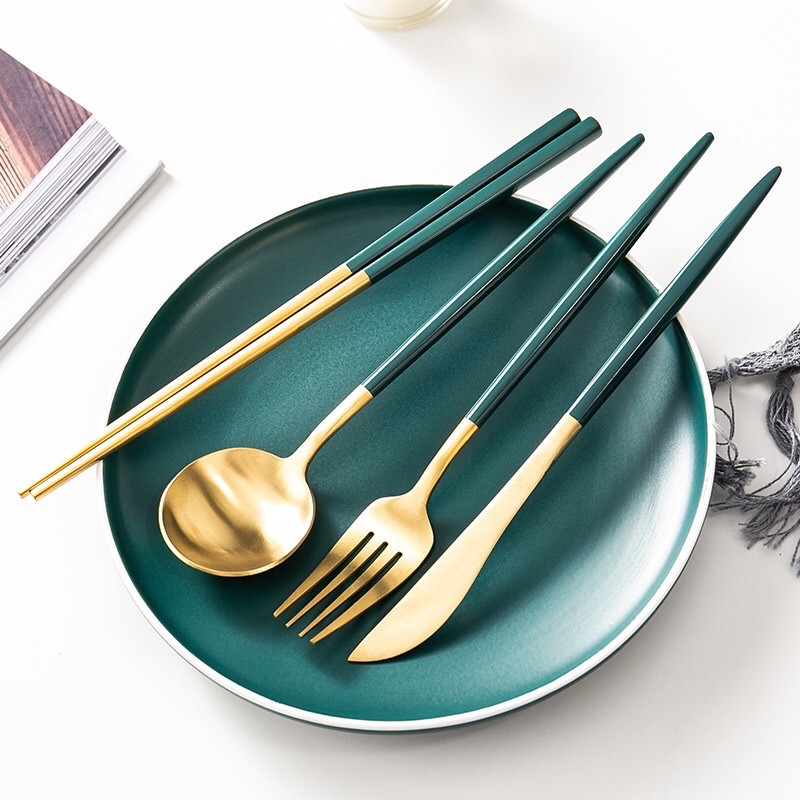 Nhà cửa & Đời sống > Bộ đồ bàn ăn > Bộ dao kéo || Sét dao dĩa đũa thìa cao cấp, inox 304 nguyên khối mạ vàng titan, inox mạ xước cao cấpCòn hàng