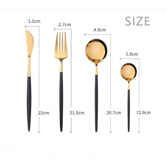 +Bộ sản phẩm bao gồm: Bộ 4 món: 01 muỗng to + 01 dao+01 dĩa + 01 muỗng cafe