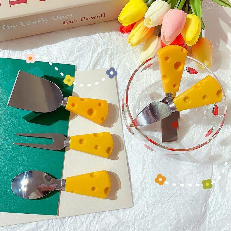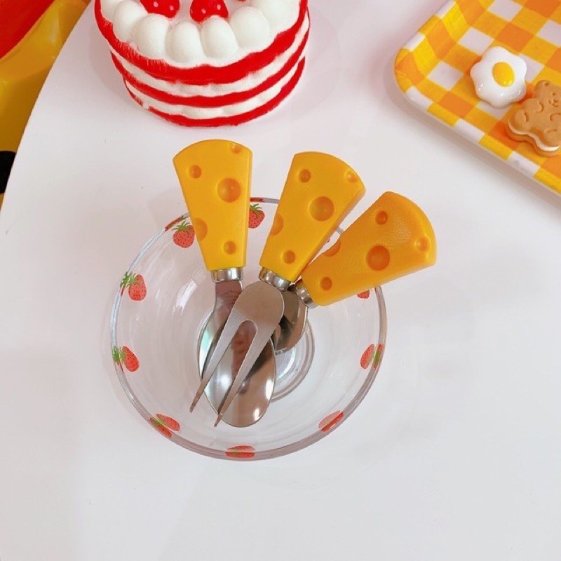 Set dao muỗng nĩa hình phô mai dễ thương