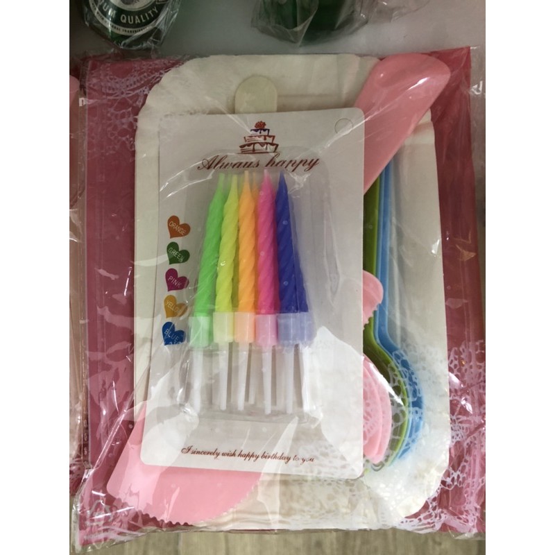 Set gồm có: 10 muỗng + 10 đĩa + 10 nĩa + nến bánh kemCửa hàng NVL và dụng cụ làm bánh Cô Chủ Nhỏ