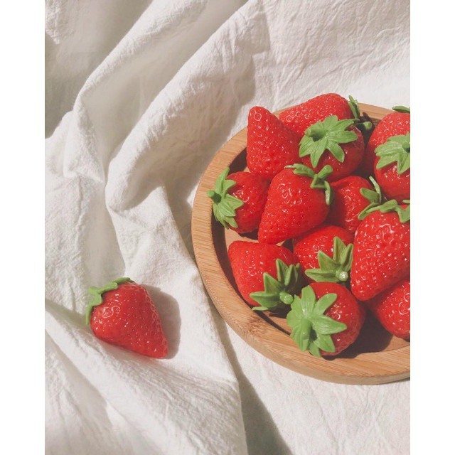 Dâu tây thường được dùng để trang trí khi bạn muốn chụp ảnh của bánh, của mỹ phẩm..Màu dâu tây đỏ tươi lên hình rất xinh nha
