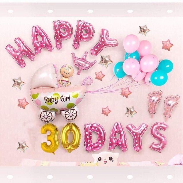 Sét bong thích hợp trang trí đầy tháng cho bé siêu xinh aSét gồm: bộ chữ happy 30 days