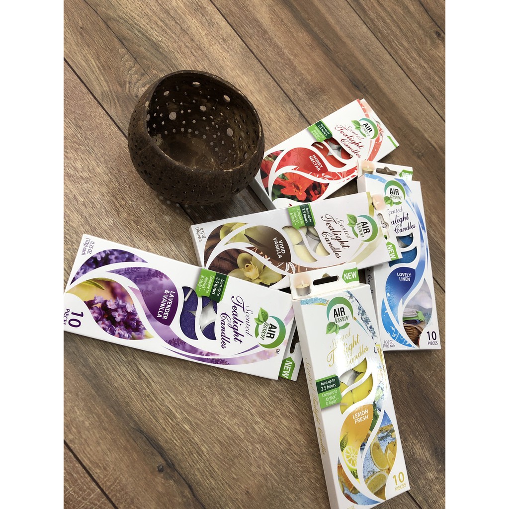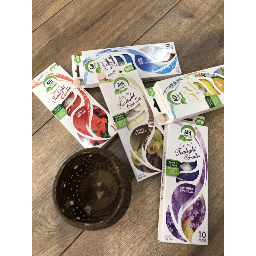 Nhà cửa & Đời sống > Trang trí nhà cửa > Nến & đồ đựng nến || SET ĐẾ DỪA + 5 HỘP NÊN TEALIGHTCòn hàng
