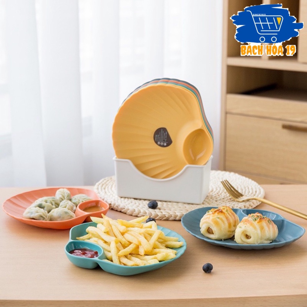Set Đĩa Đựng Thức Ăn Để Bàn Hình Sò - Set 4 Dĩa Nhựa Dercor Rẻ Đẹp Màu Sắc Bắt Mắt