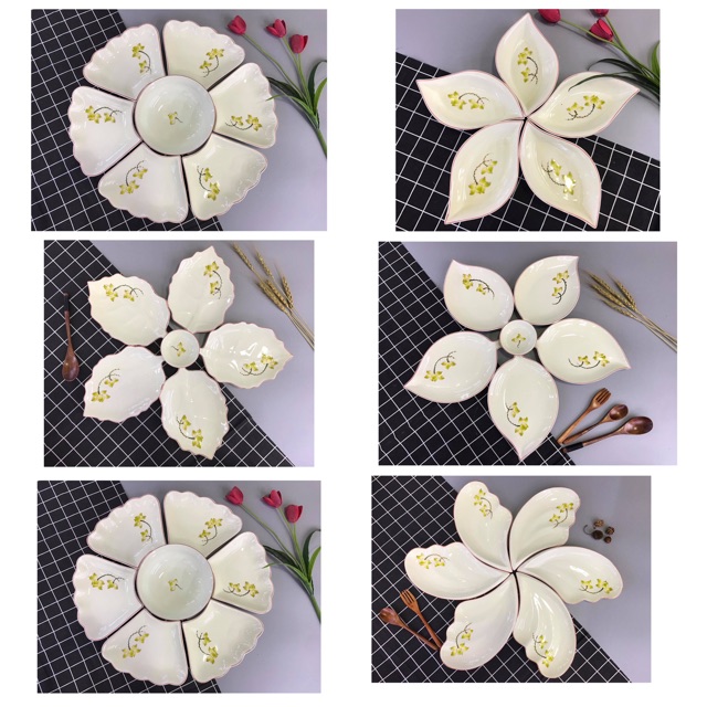 Nhà cửa & Đời sống > Bộ đồ bàn ăn > Dĩa || Set đĩa hoa trang trí món ăn gốm Bát Tràng (Chọn mẫu)Còn hàng