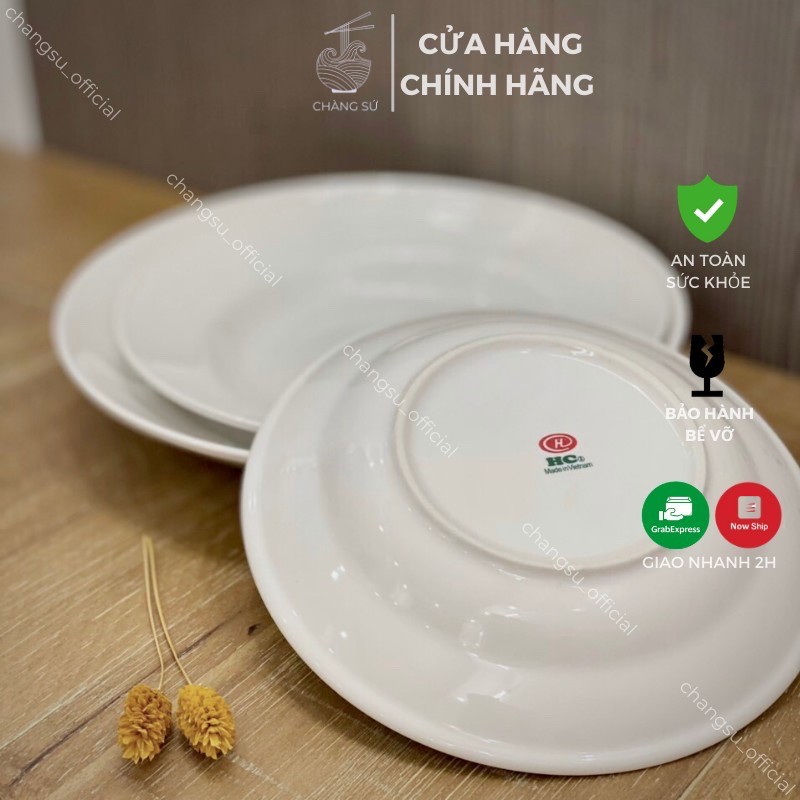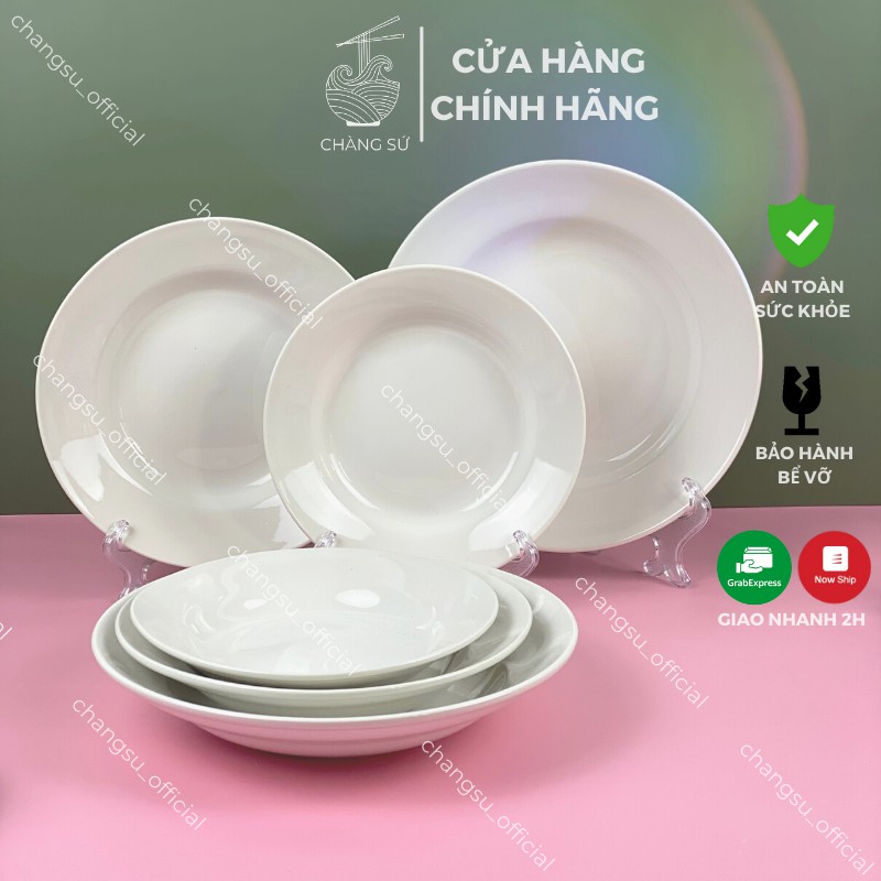 Set dĩa sứ trắng trọn bộ 3 đĩa tròn sâu lòng hiện đại - Vỡ 1 đổi 1