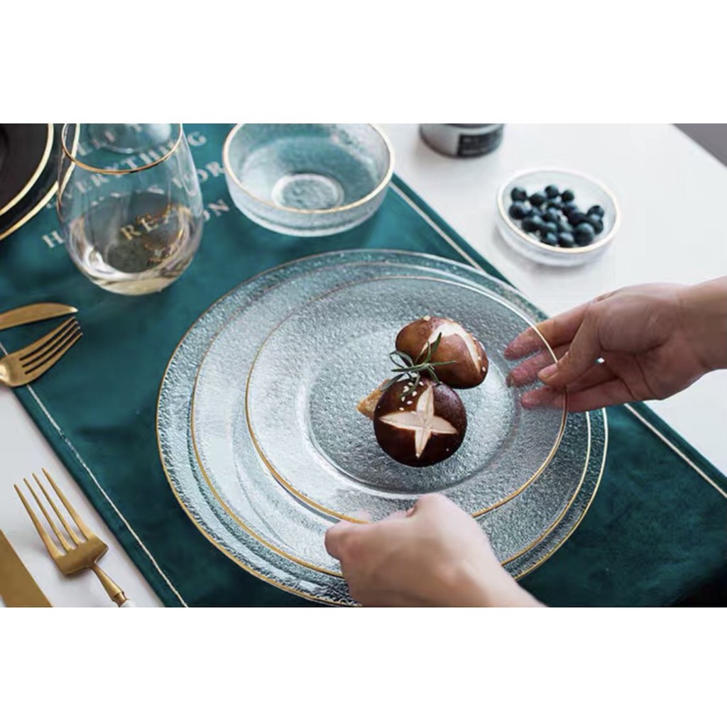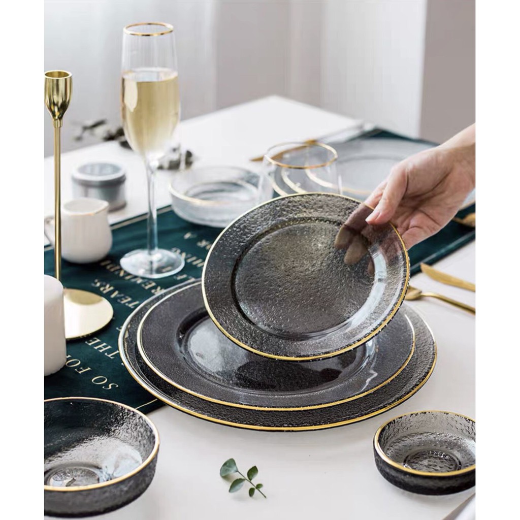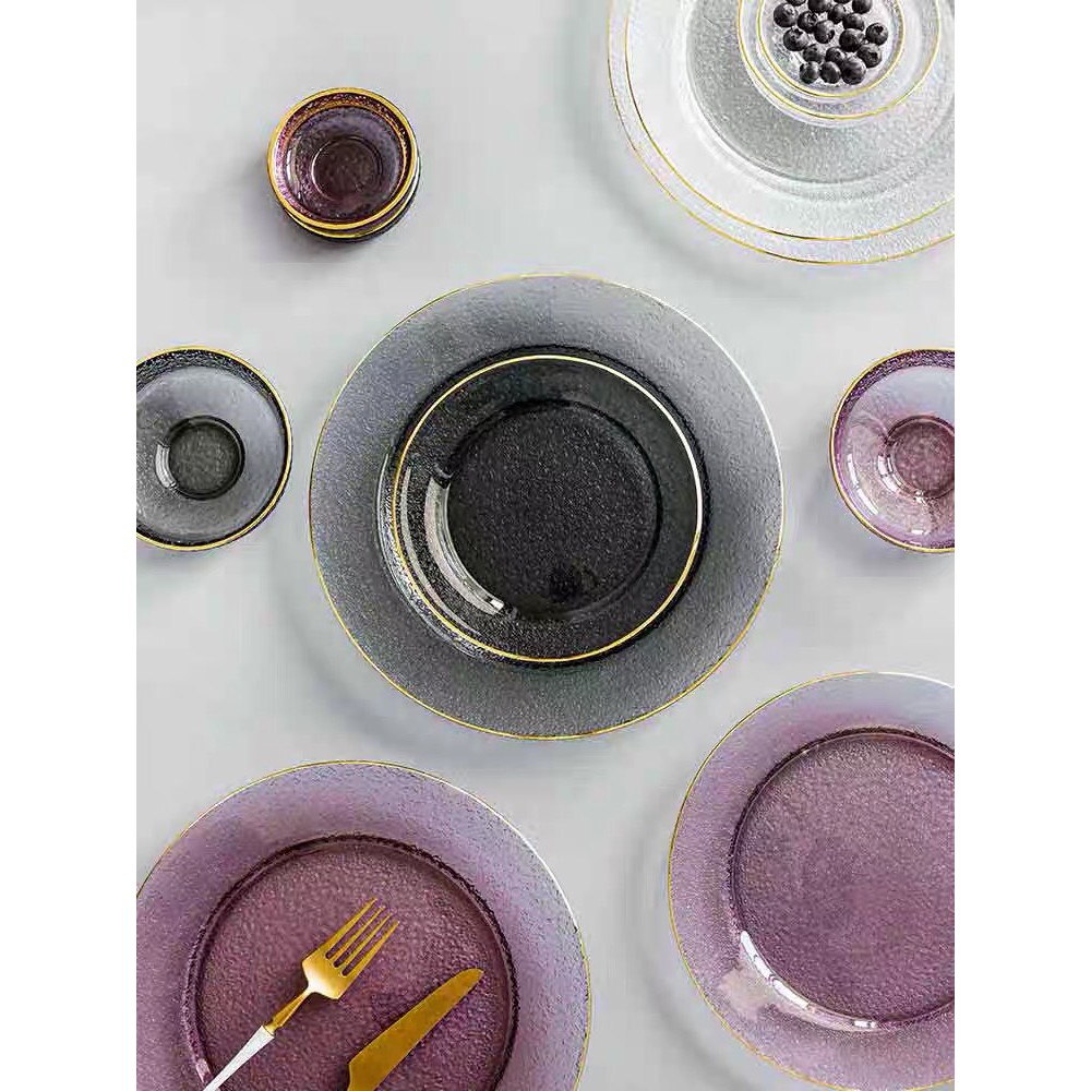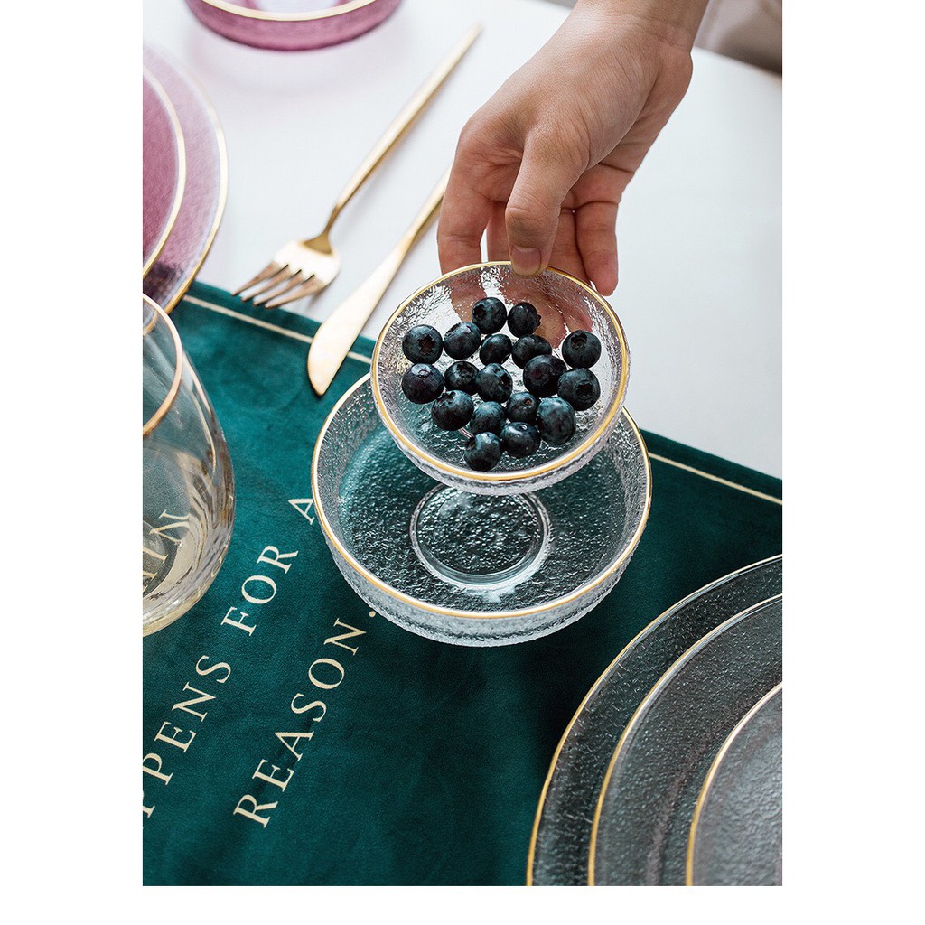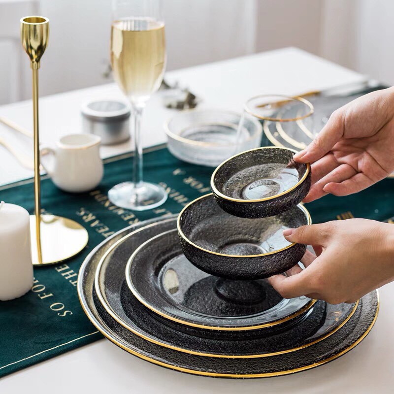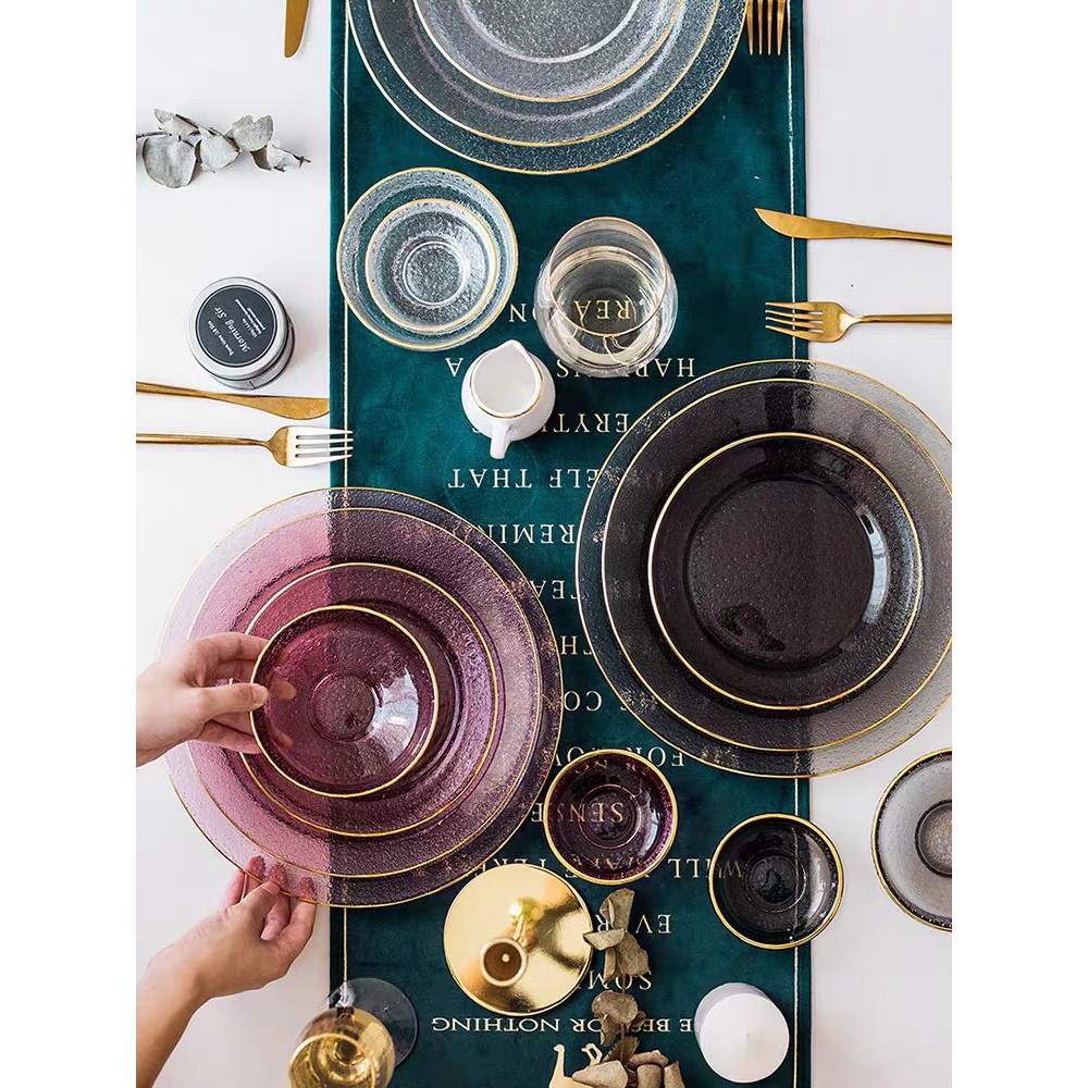 Nhà cửa & Đời sống > Bộ đồ bàn ăn > Dĩa || Set đĩa và tô thủy tinh nhiều màu sắc viền vàng, để hoa quả,salad,bánh kẹo, mới lạ phù hợp cho mọi gia đìnhCòn hàng