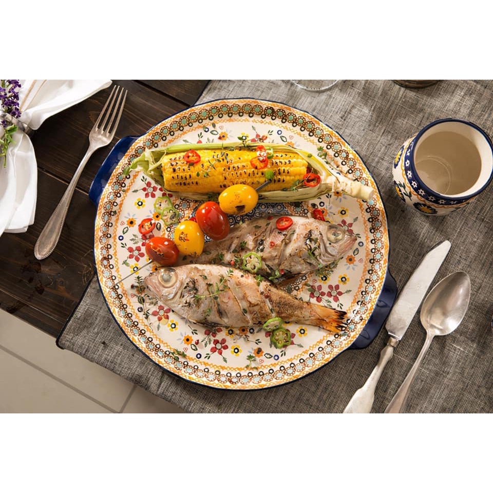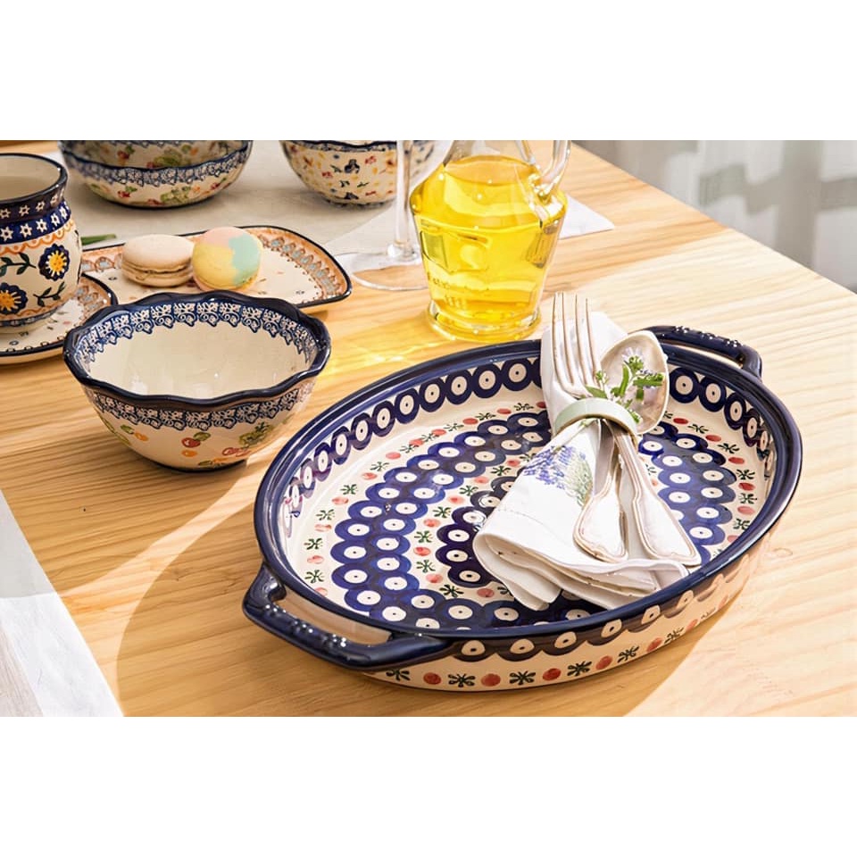 1 đĩa ovan sâu lòng có tay cầm (Peacock Eye): 38 x 23.3 x 4cm (Chiều rộng x Đường kính x Chiều cao)