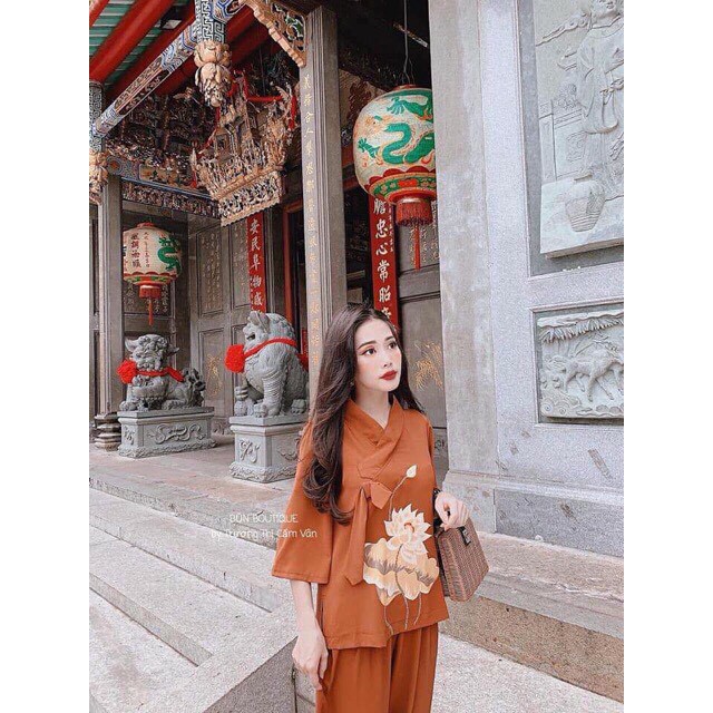SET ĐỒ LAM ĐI CHÙA IN HOA SEN NỔI BẬT d06