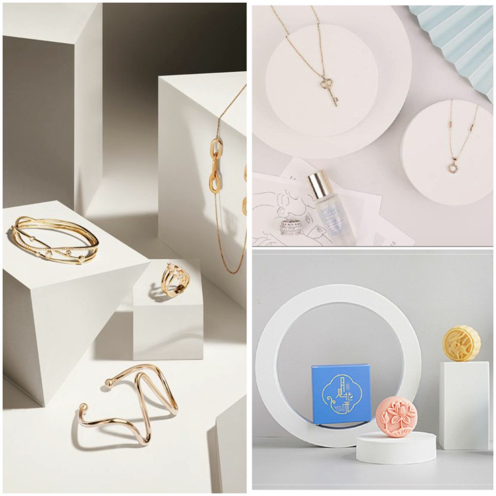#Khối-hình-học phù hợp khi chụp với các sản phẩm nhỏ như: Mỹ phẩm, trang sức, nước hoa, son môi, mắt kính, đồng hồ. Có thể kết hợp cùng các loại #phông-nền và #phụ-kiện như tấm gương, tượng, hoa, lá..