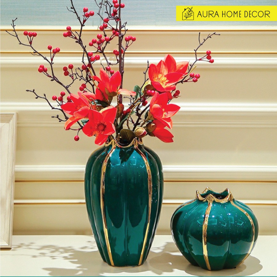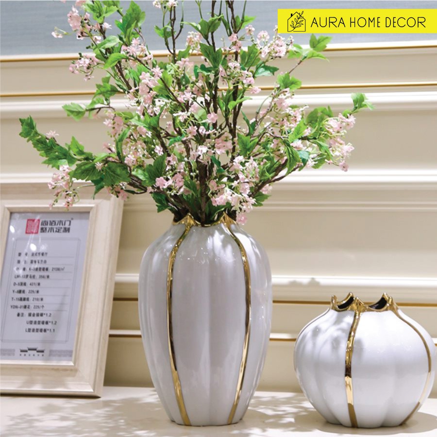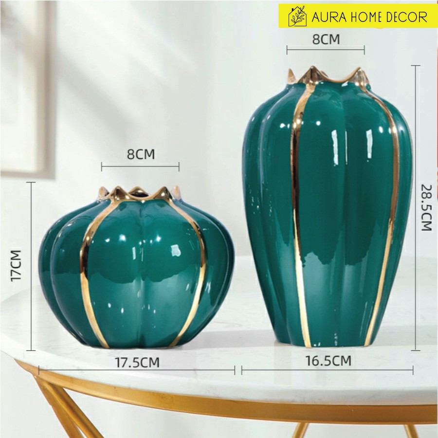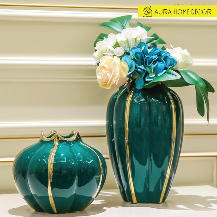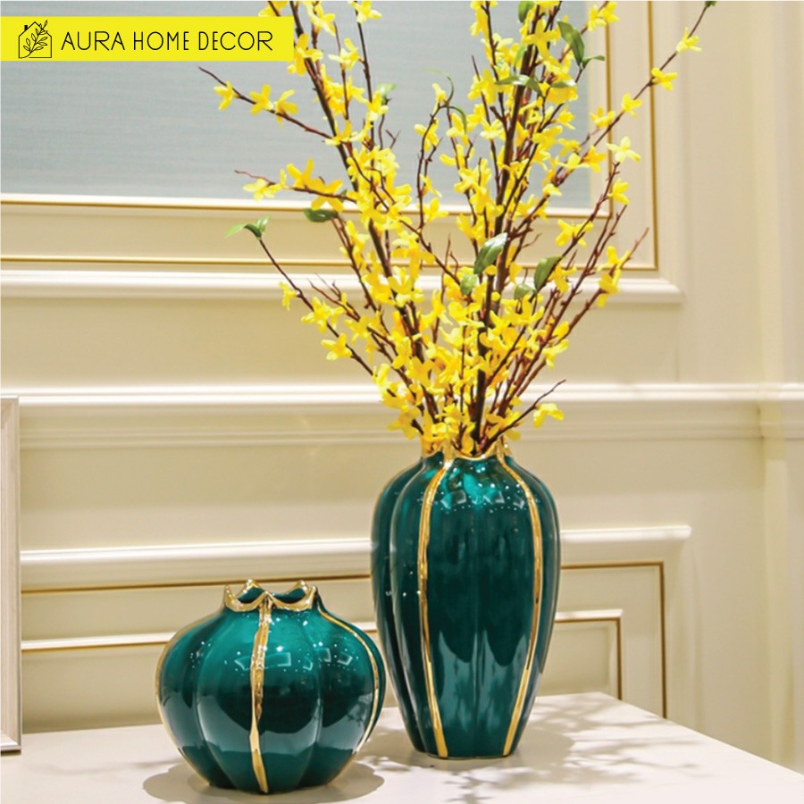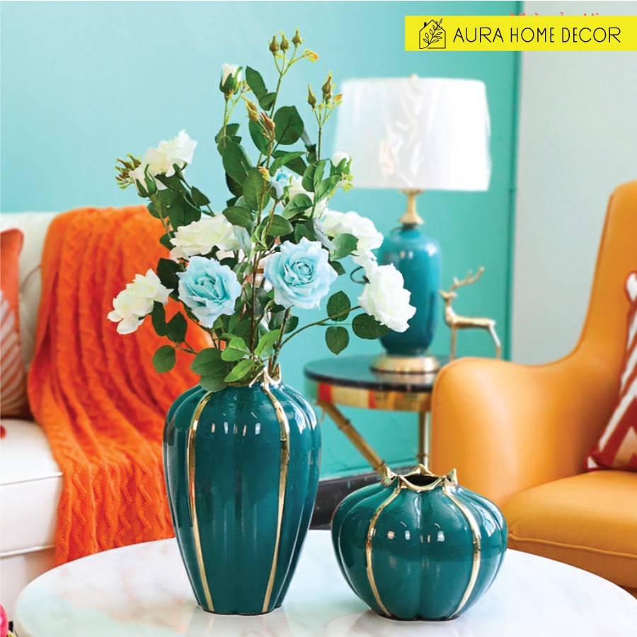 Nhà cửa & Đời sống > Trang trí nhà cửa > Bình trang trí || Set đôi lọ hoa xanh/trắng viền vàng decor theo trend #sốngsang cho phòng khách, sảnh khách sạn, kệ, tủ, phòng làm việcCòn hàng