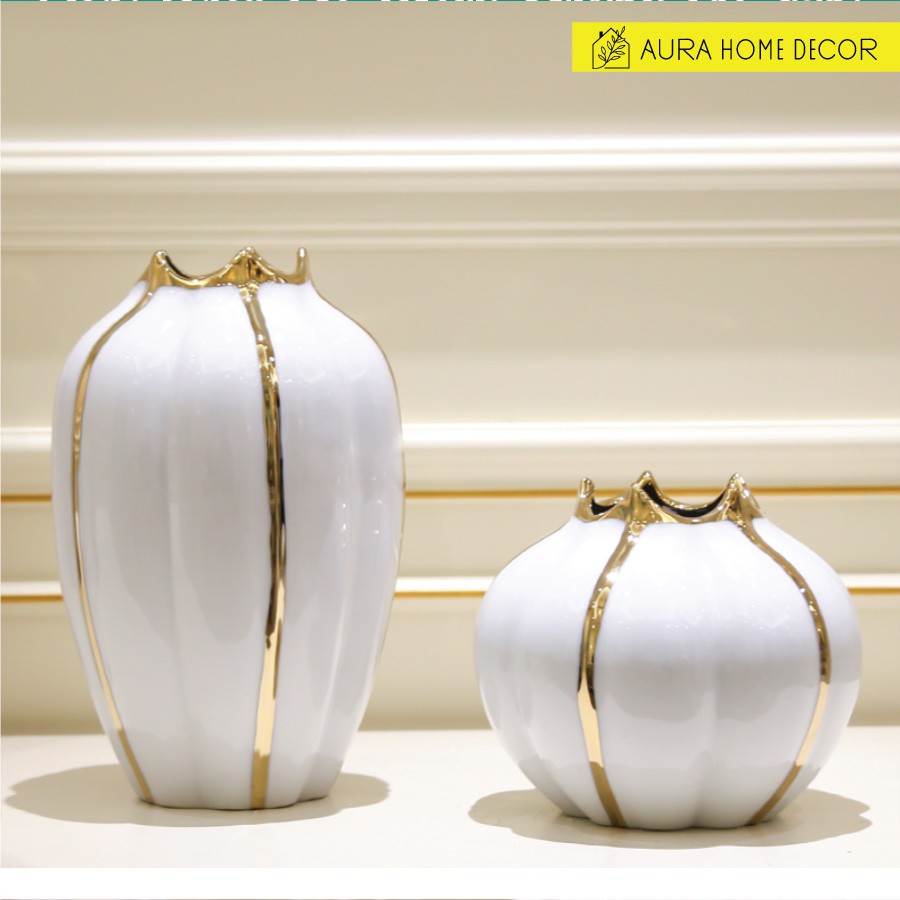 Set đôi lọ hoa xanh/trắng viền vàng decor theo trend #sốngsang cho phòng khách, sảnh khách sạn, kệ, tủ, phòng làm việcSet đôi lọ hoa có 2 màu xanh viền vàng và trắng viền vàng, sản phẩm decor theo trend #sốngsang cho phòng khách, sảnh khách sạn, kệ, tủ, phòng làm việc... Set đôi lọ viền vàng được tạo hình cách điệu với những nét chúm chím như hình bông hoa đặc biệt là phần miệng, men lam bóng mịn.