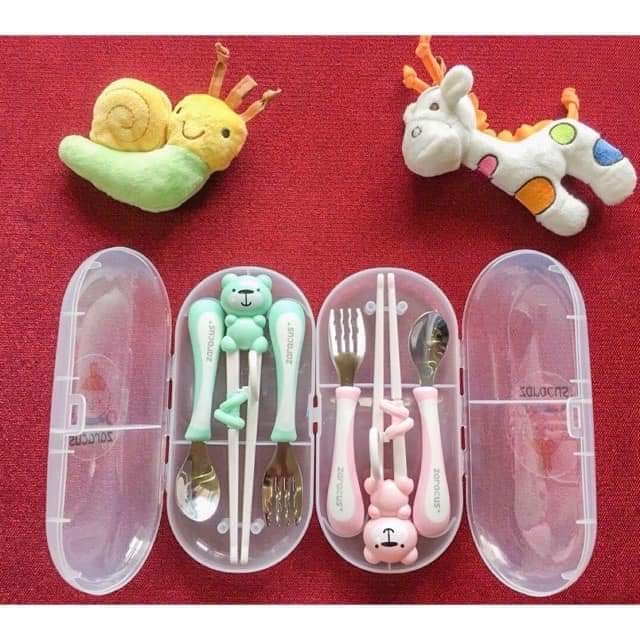 ẶC ĐIỂM SẢN PHẨM:🔸Bộ sản phẩm gồm: Đũa tập ăn, thìa, dĩa và hộp đựng.