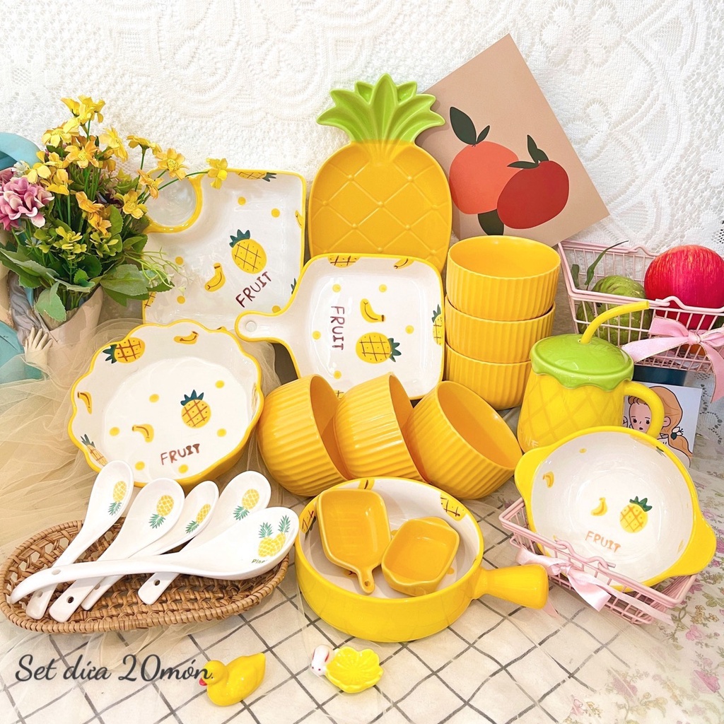 Sét dứa vàng 20 món bát đĩa gốm sứ decor cực xinh yêu