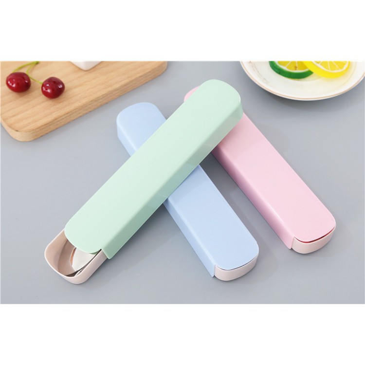 Chất liệu: Muỗng đũa xiên bằng Thép không gỉ, Hộp bằng nhựa PP.