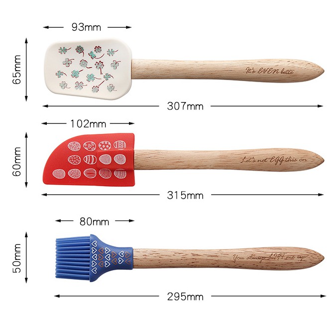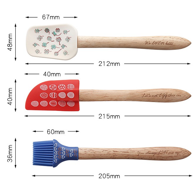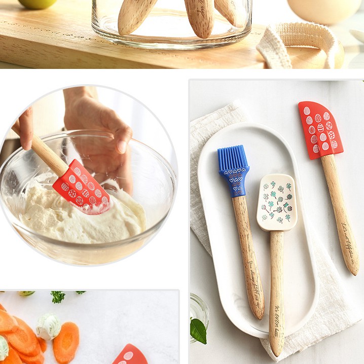 Set dụng cụ làm bánh 3 món bằng silicon in hoa văn tay cầm gỗ