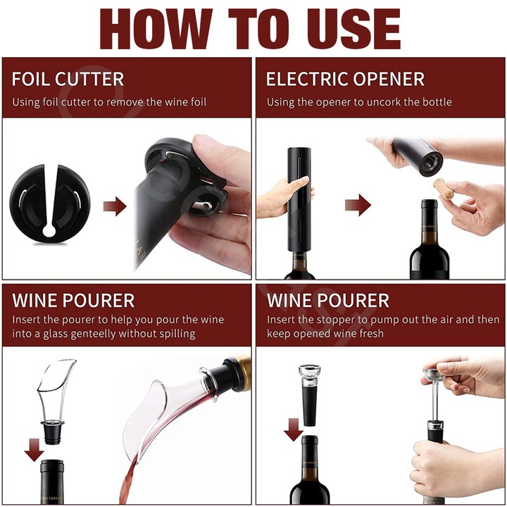 Set dụng cụ mở rượu vang tự động 4 trong 1 MGS-KP1-361901 Hợp kim nhôm + nhựa ABS + PC🍸 Máy mở rượu chạy bằng pin sạc USB 500mAh, NI-MH với thiết kế độc đáo, tinh gọn rất tiện lợi để mở rượu một cách đơn giản nhẹ nhàng nhất