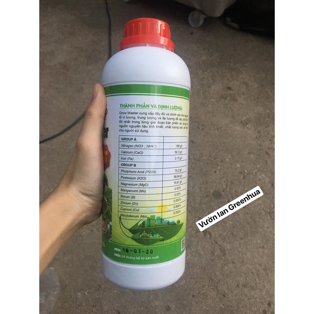 Dung dịch dinh dưỡng thủy canh Grow Master chai 1 lít dành cho rau ăn lá đậm đặc, sử dụng nguyên liệu tinh khiết 90% là nhập ngoại từ các nước Israel, Italia, Canada…