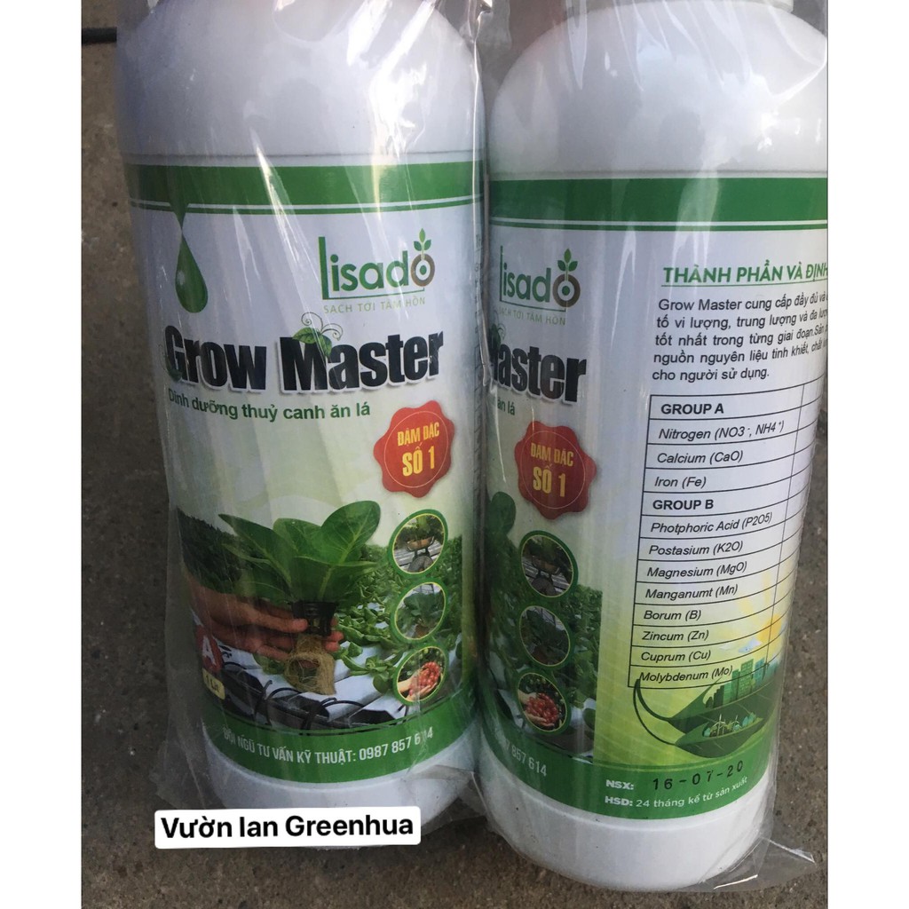 Dung dịch thủy canh Grow Master ăn lá cặp 2 lít pha loãng 350 lít nước