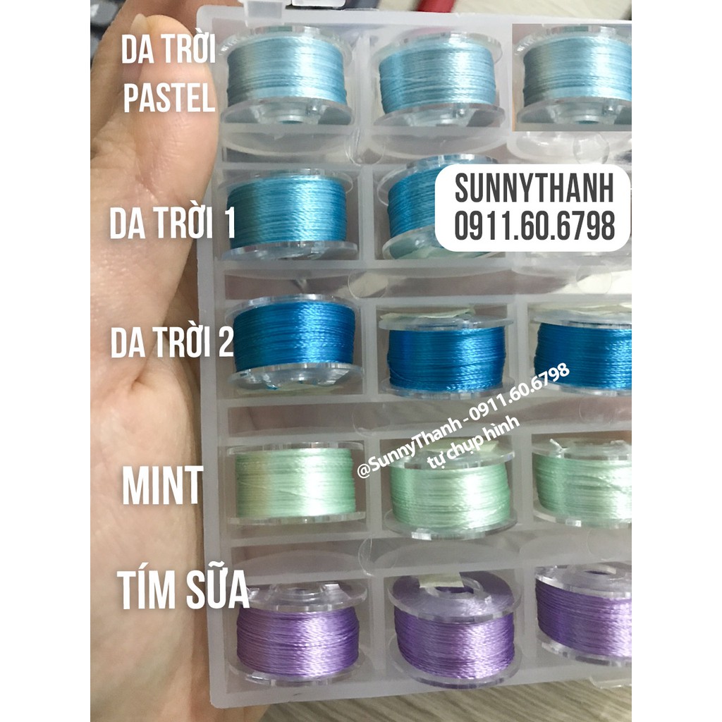 Giới thiệu SET FULL 11-25 màu - 25 cuộn đại 500M chỉ THÊU tơ BÓNG SunnyThanh, thêu face doll Kpop