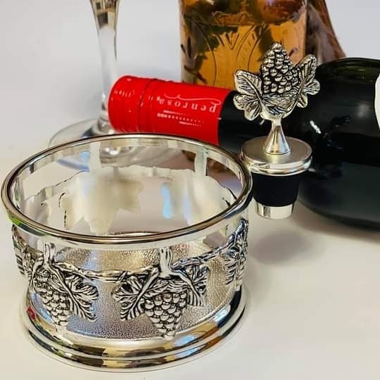 SET GIÁ ĐỂ CHAI VANG KÈM NÚT CHAI VANG HÌNH TRÁI NHO MẠ BẠC CỰC SANG EDZARD GERMANYGiá SALE : 1050k
