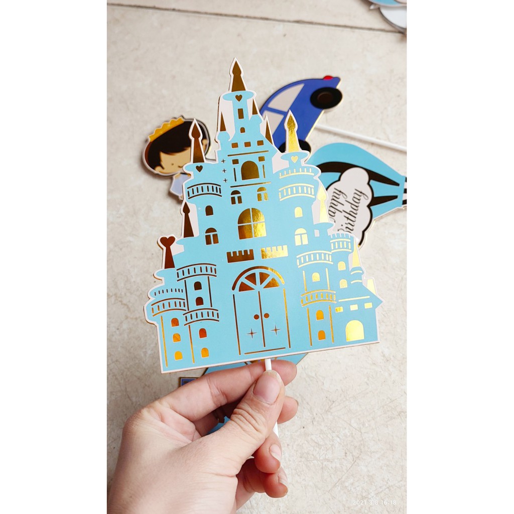 Bộ hình giấy HOÀNG TỬ lâu đài ánh kim trang trí bánh sinh nhật, set cắm giấy công chúa, thiên thần- Dùng cắm trang trí lên bánh kem, bánh sinh nhật các loại...