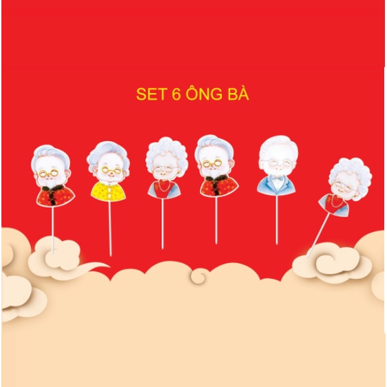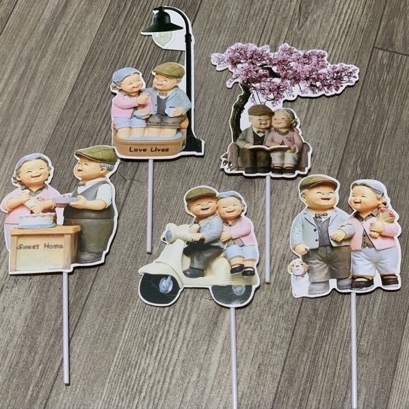Set hình giấy ông bà trang trí bánh sinh nhật sinh nhật, bánh mừng thọ set cắm giấy hiện đại