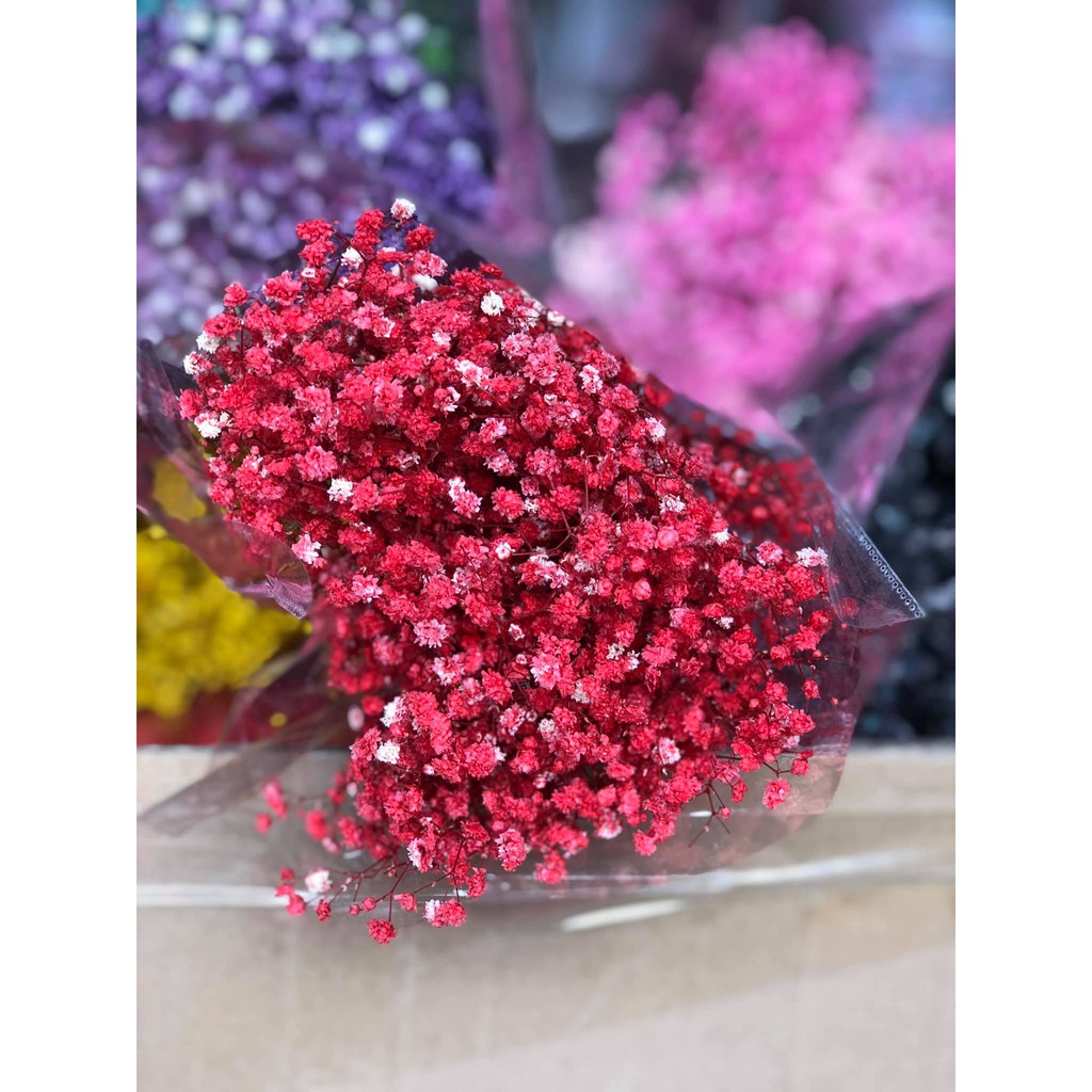 Hoa baby khô được xử lý sấy khô công nghệ cao và ướp màu để giữ được phom dáng đứng như hoa còn tươi và màu sắc sinh động , ngọt ngào . không bị mềm rủ héo rũ như hoa để khô tự nhiên .