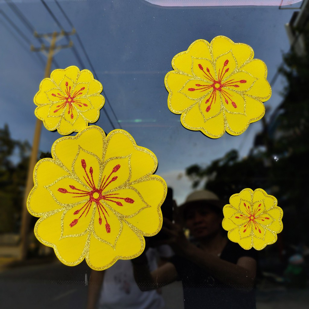 Set hoa mai vàng kim tuyến xốp dẻo dán keo hai mặt