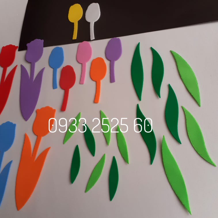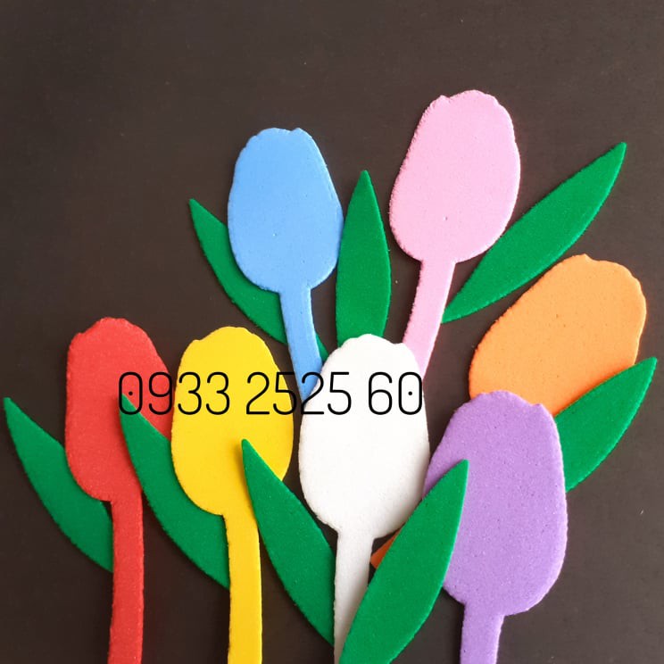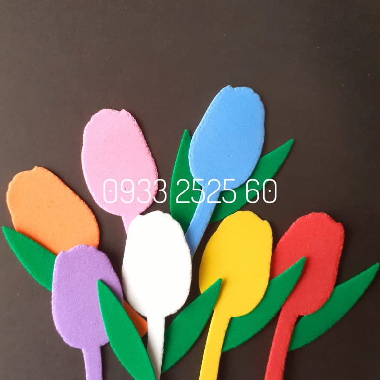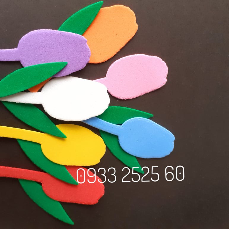 Giới thiệu Set hoa TULIP, bằng xốp, gồm: 20 hoa+10 nụ+20 lá lớn+20 lá nhỏ-Hoa trang trí tường, thủ công mầm non, phụ kiện làm thiệp