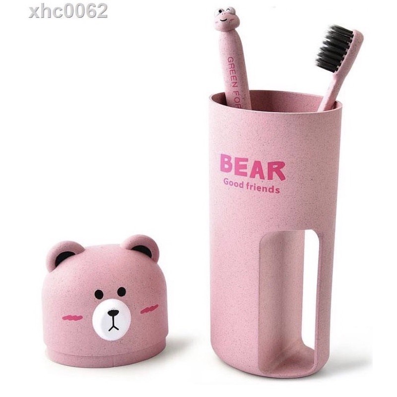 Nhà cửa & Đời sống > Đồ dùng phòng tắm > Khác || SET Hộp Đựng Bàn Chải Hình Chất Liệu Thân Cây Lúa Mạch Gấu Xinh Xắn Cho Bé Kèm 02 Bàn Chải Than Hoạt TínhCòn hàng