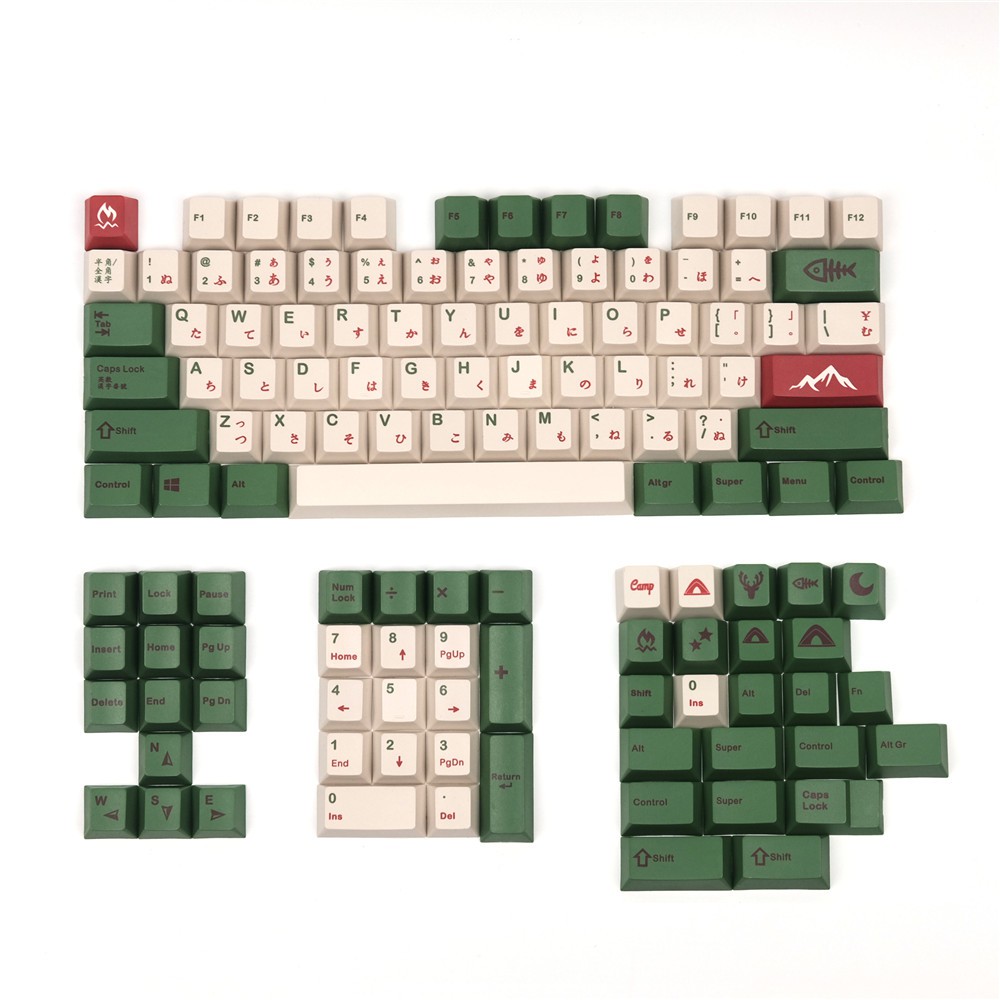 Set keycap Camping và Samurai Cherry profile 127 phím, chất liệu thick PBT, in dye sub 5 mặt lắp vừa hết layout phím cơ