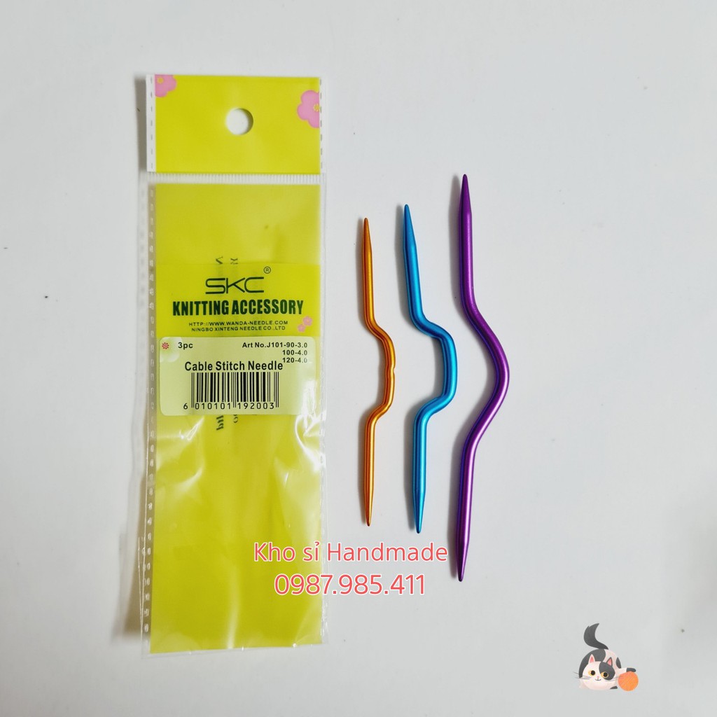 BỘ KIM ĐAN VẶN THỪNG SKC (1 bộ/ 3 cây)Bộ kim đan có 3 kim với kích thước to nhỏ khác nhau, phù hợp với các loại len sợi khác nhau. Giúp bạn đan khăn, đan áo vặn thừng