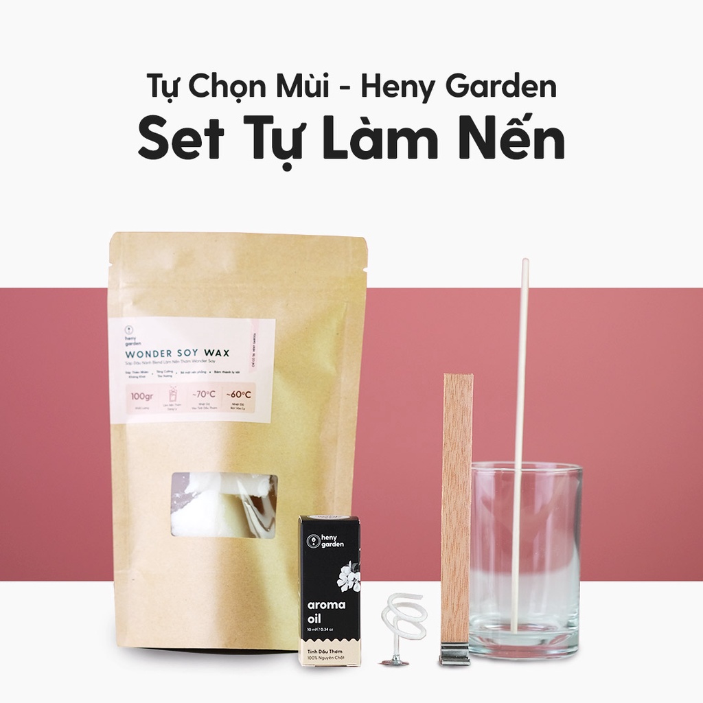 Set Làm Nến Thơm Tự Chọn Tinh Dầu Đầy Đủ Nguyên Liệu Làm Nến Thơm Handmade Heny Garden