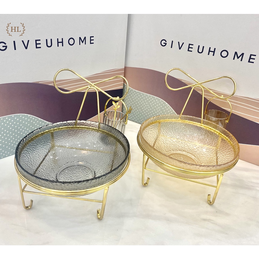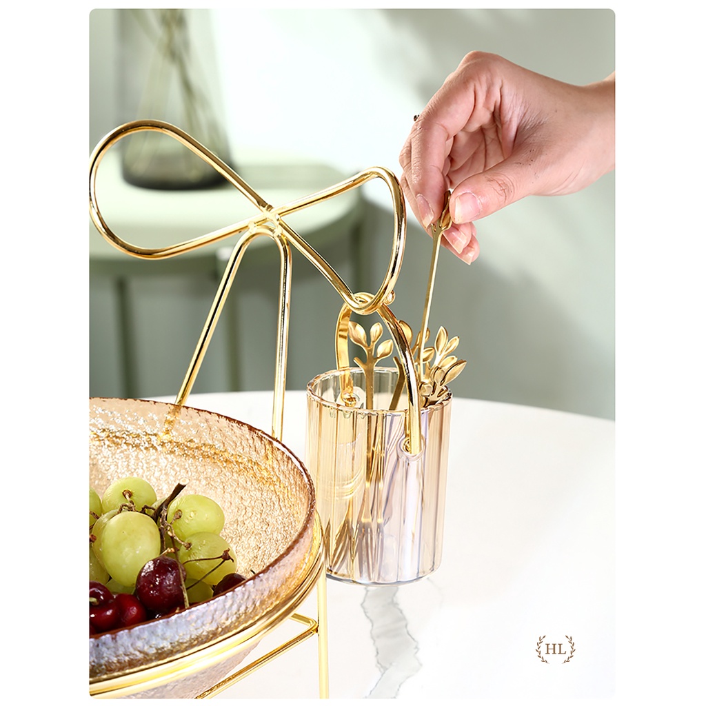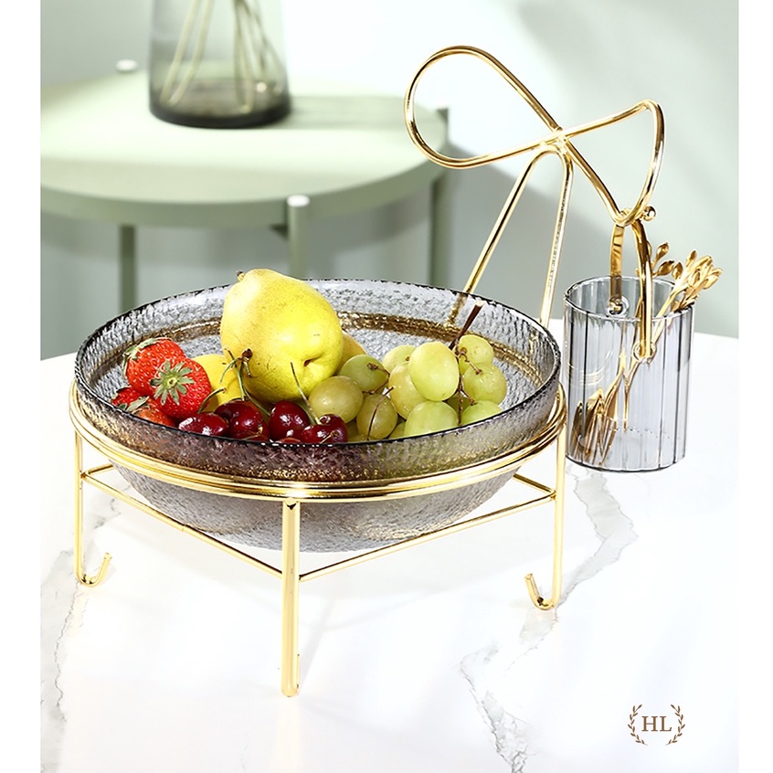 Nhà cửa & Đời sống > Bộ đồ bàn ăn > Tô || Set Lẵng Thủy Tinh Kèm Nĩa | Bát Thủy Tinh Đựng Hoa Quả Kèm Kệ Inox Vàng Màu Hổ Phách - Khói Xám Phong Cách Vintage 2022Còn hàng