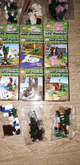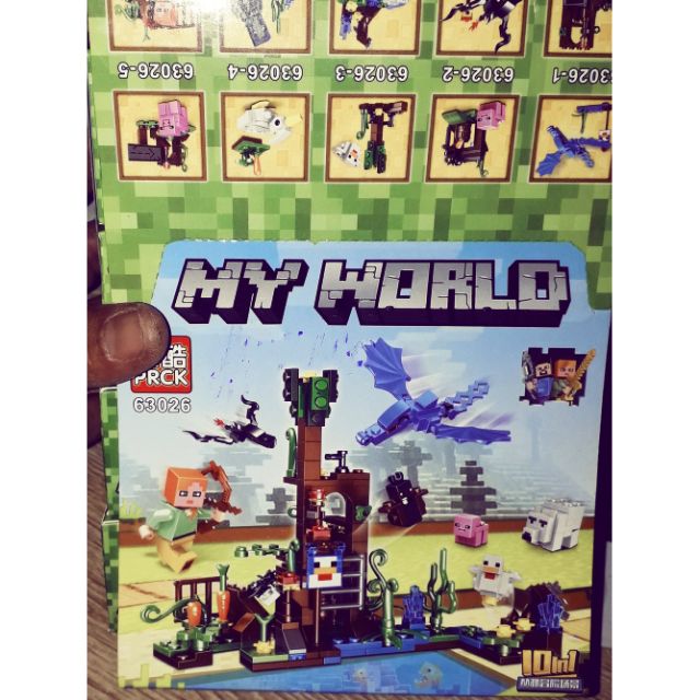 Sản phẩm là 1 sét trọn bộ lắp ráp LegoMineCraft MyWord 63026 có gần 300 chi tiết bằng nhựa rất đẹp như hình.Sản phẩm được đóng gói trong 10 hộp nhỏ như hình.