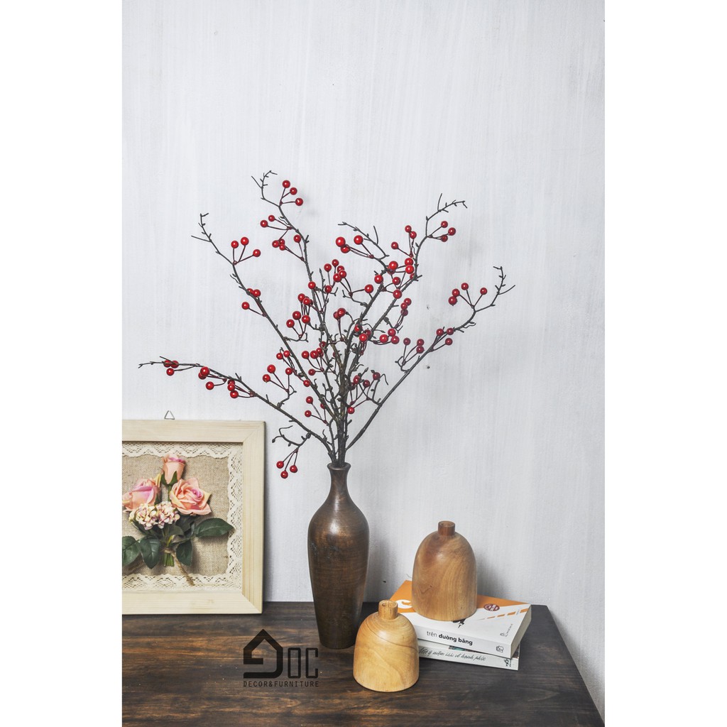 Set Lọ hoa gỗ kèm hoa đào đông vintage thủ công mỹ nghệ trang trí Góc Decor