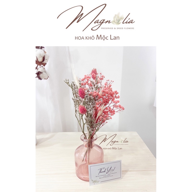 Set lọ thuỷ tinh kèm hoa baby phalaris phối hợp ❤️HOA KHÔ MỘC LAN❤️ phong cách vintage