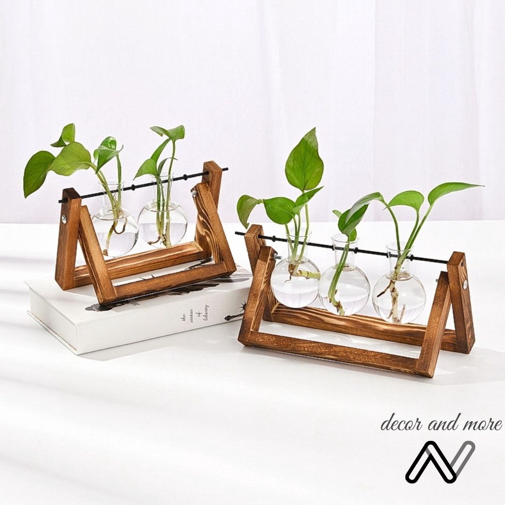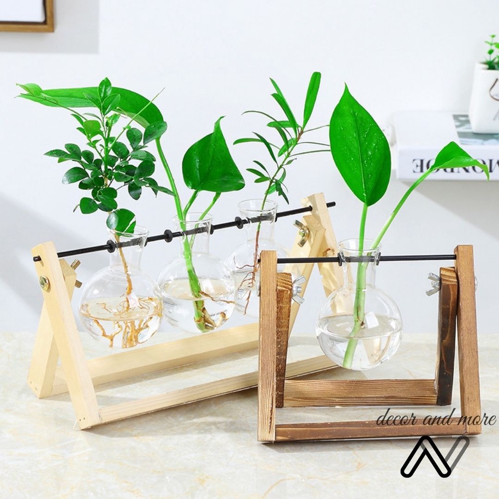 Nhà cửa & Đời sống > Làm vườn > Chậu cây || Set lọ thủy tinh trồng cây thủy canh kèm đế gỗ trang trí bàn làm việcCòn hàng