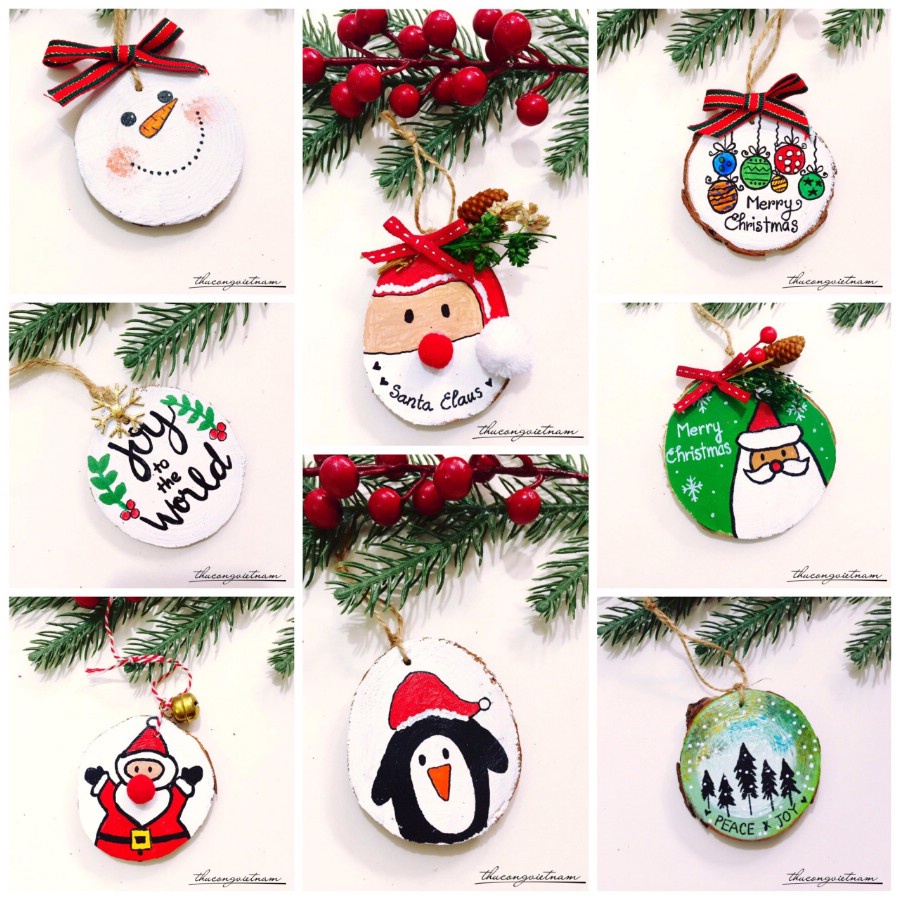 Thường được dùng để treo lên cây thông Noel. Với các bạn thích có thể vẽ lên miếng gỗ trước.