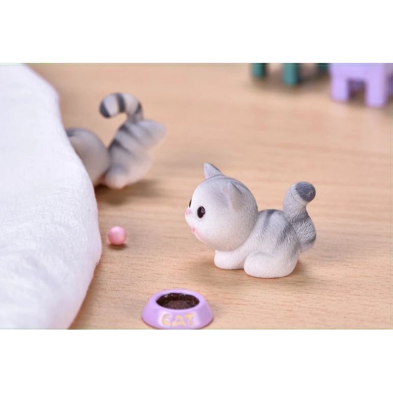 Set mô hình mèo tiểu cảnh trang trí bàn học, bàn làm việc, tủ sách, hòn non bộ, taplo ô tô