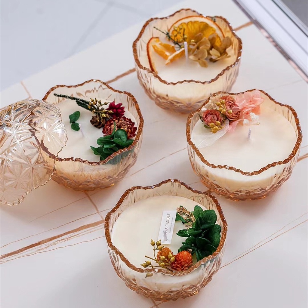 Set Nến Thơm Hoa Khô Hũ Thủy Tinh Nắp Đậy Sang Trọng - Kèm Hộp Quà - Trang Trí- Quà Tặng