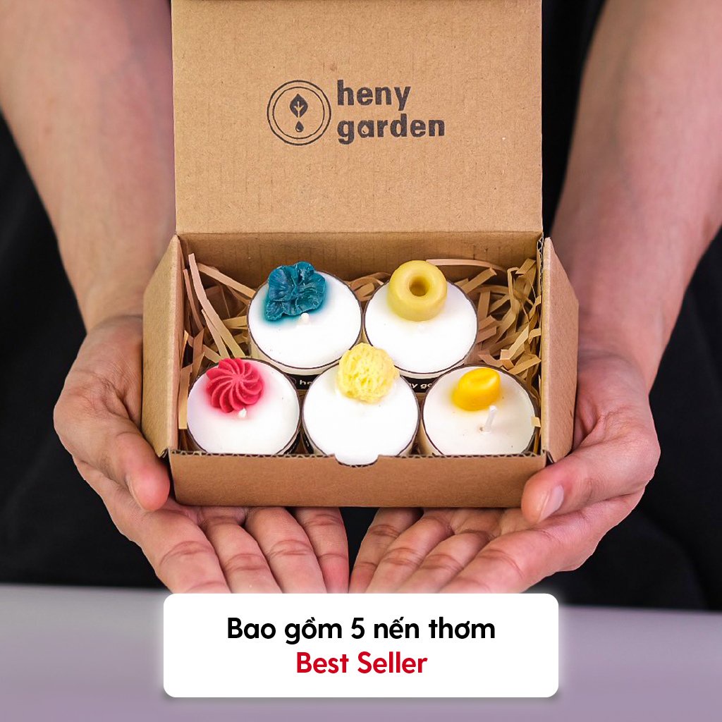 Set quà gồm 5 viên nến sẽ được giao ngẫu nhiên trong 8 mùi hương best seller tại Heny Garden