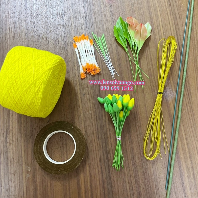 Set nguyên liệu làm cành hoa mai/hoa đào gồm:- 1 cuộn sợi ctvn