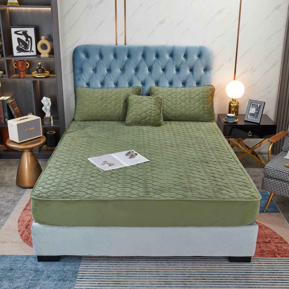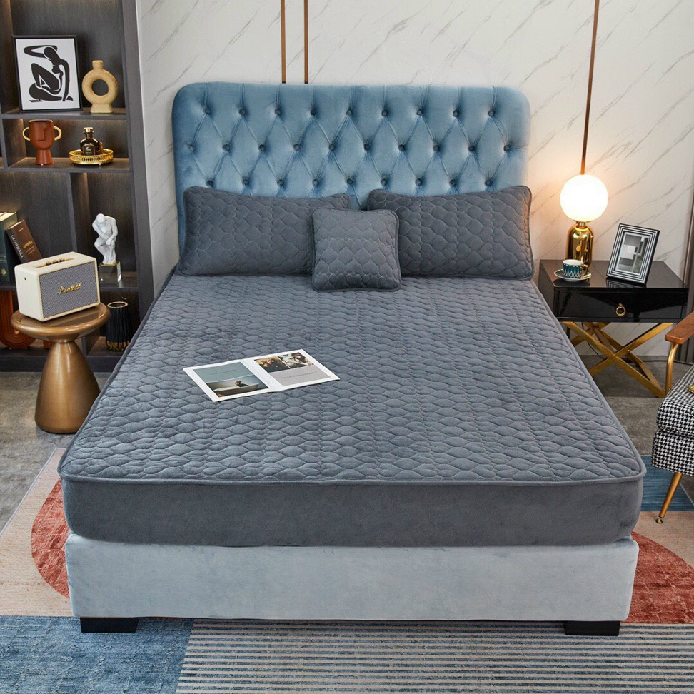 bộ ga giường nỉ nhung trần bông 3 lớp , bọc đệm trần tim ( tặng một vỏ gối vuông 40*40)