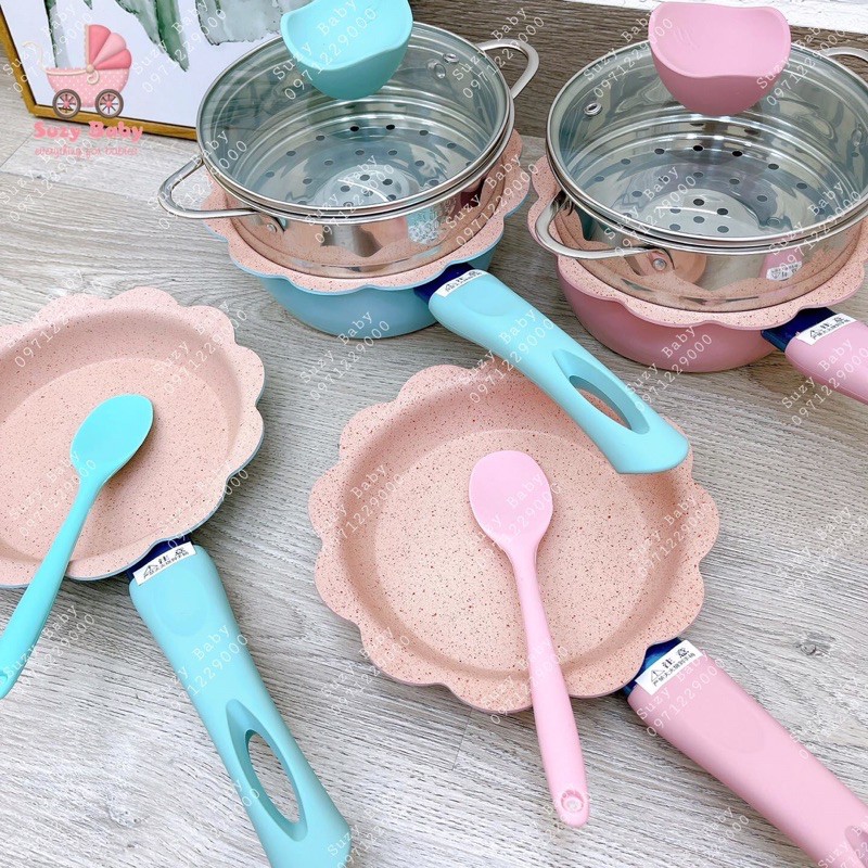 Nhỏ xinh đường kinh 16cm, bộ nồi sử dụng cho bé đến lúc lớn luôn , mẹ có thể để lại, dùng nấu cho bé sau cũng được.