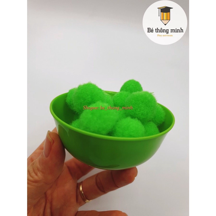 Set bát + pompom : gồm 6 bát, 2 kẹp, pompom 6 mầu cỡ 2cm đựng đầy bát như ảnh, siêu rẻ, chơi siêu thích