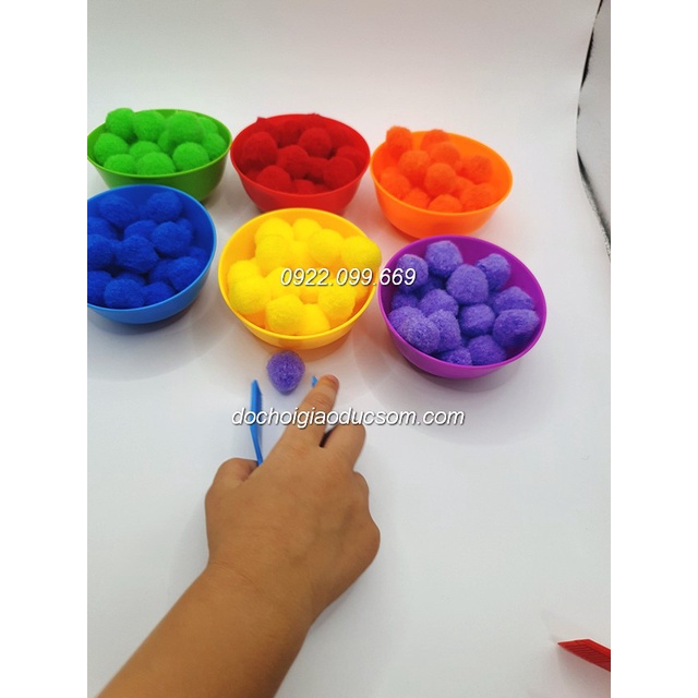 Set phân loại màu sắc tập gắp pompom (6 bát+ 2 kẹp)