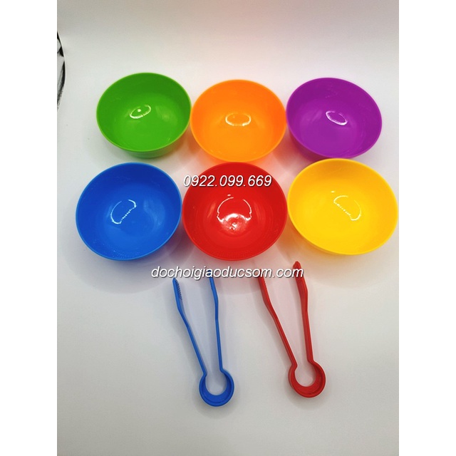 Nhà cửa & Đời sống > Bộ đồ bàn ăn > Tô || Set phân loại màu sắc tập gắp pompom (6 bát+ 2 kẹp)Còn hàng