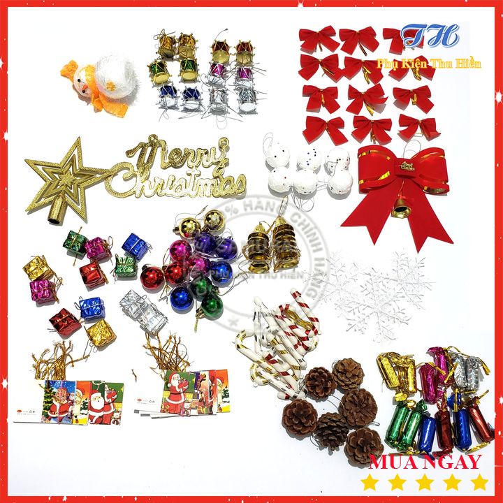 Sét Phụ Kiện Trang Trí Cây Thông Noel Trang Trí Giáng Sinh Gồm Quả Châu, Thiệp Giáng Sinh Và Nhiều Phụ Kiện KhácThông tin sản phẩm:
